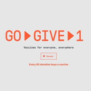 Around the world, there are places where COVID-19 vaccination numbers are much lower than the UK, and healthcare workers and vulnerable patients remain unvaccinated. Go Give One funds COVID-19 vaccine doses for lower income countries.